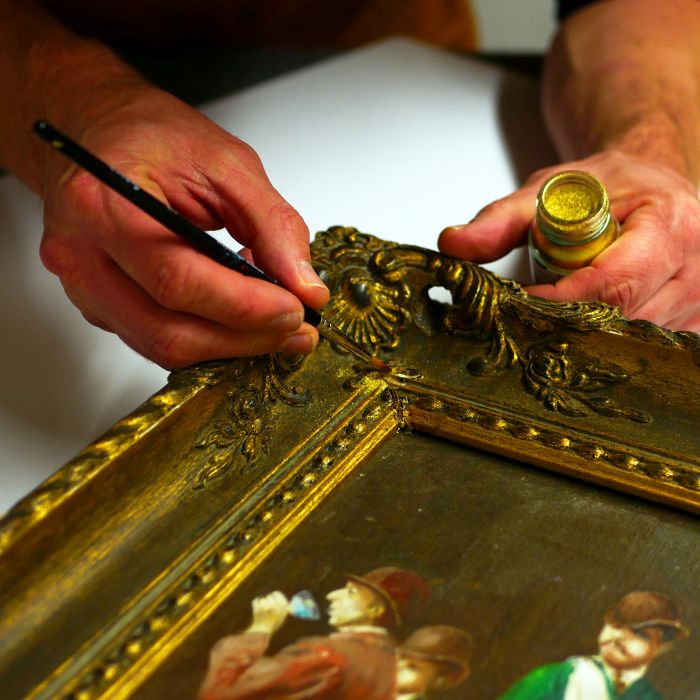 Restoration including gilding, touching-up and re-painting of frames.