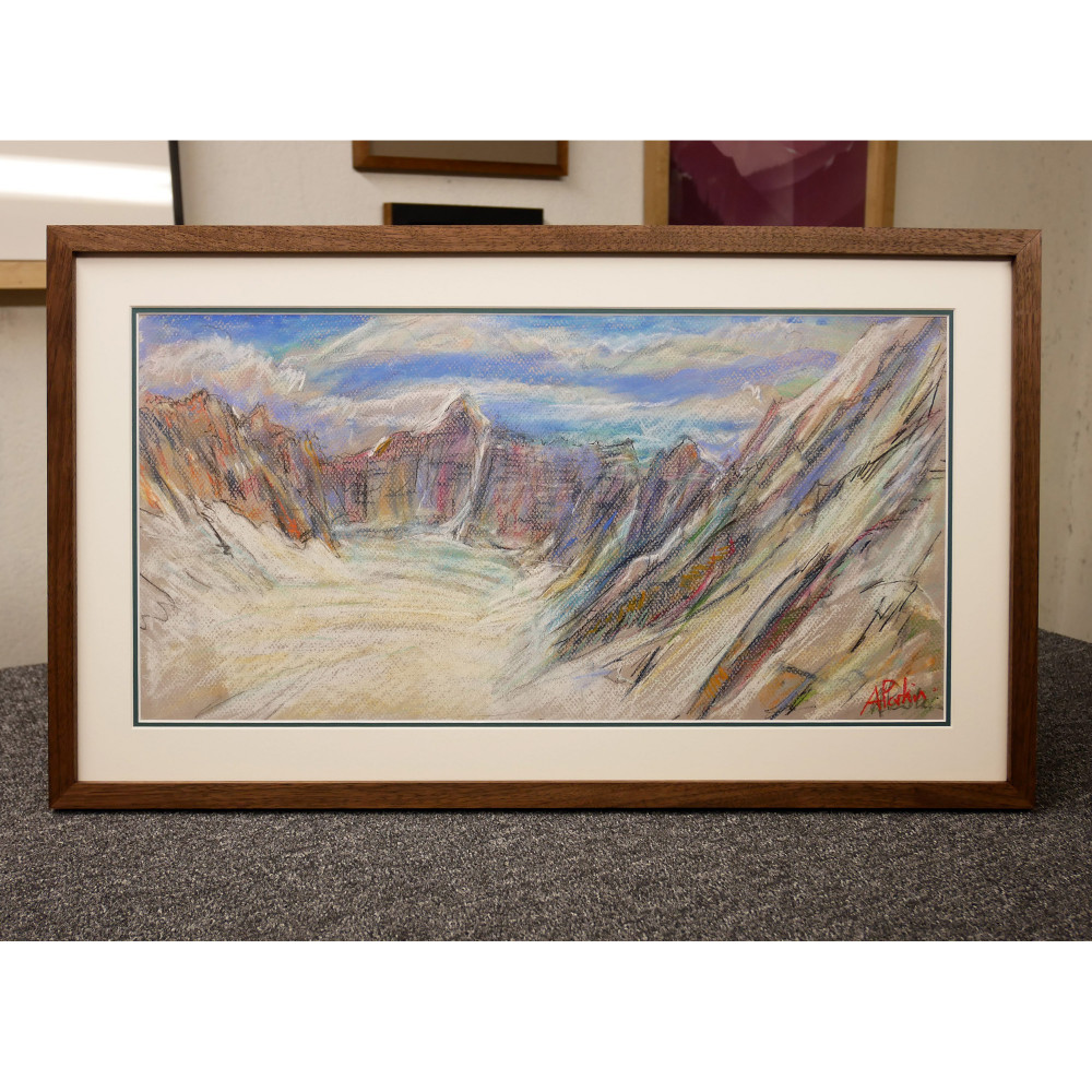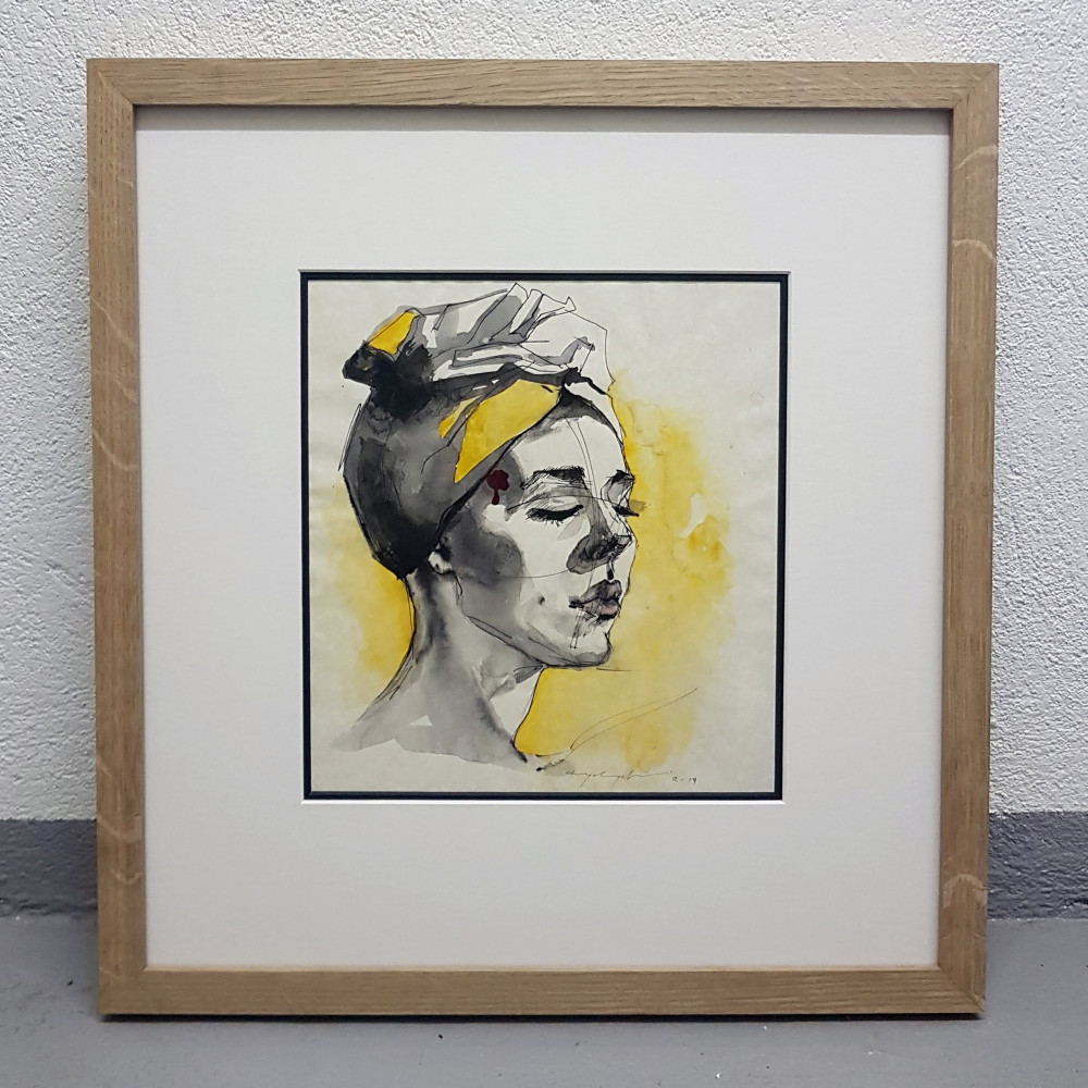 Original artwork with double mount in oiled walnut with anti-refelctive glass.