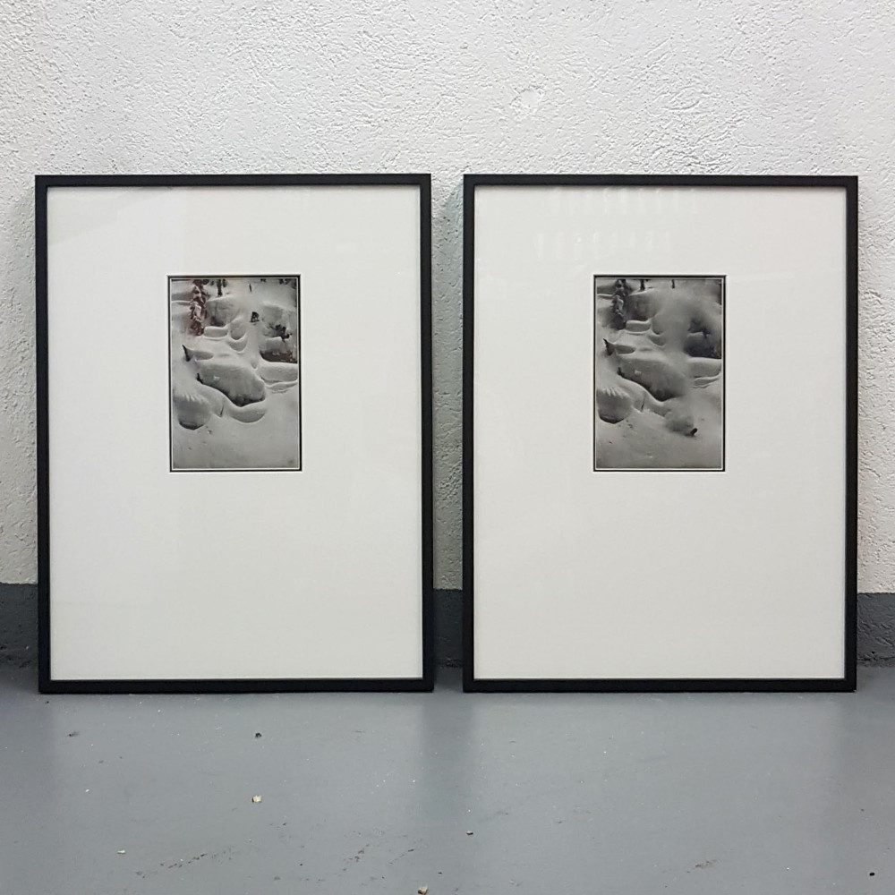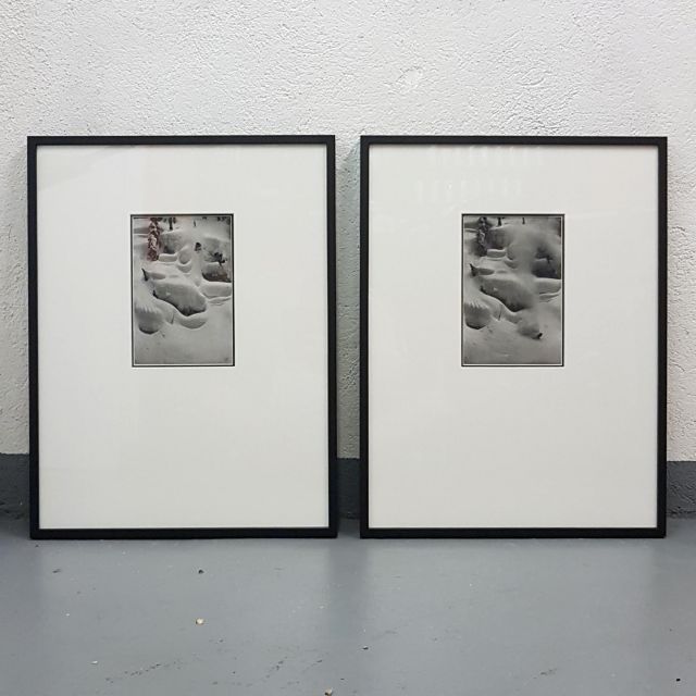 Custom matching frames made from locally sourced mélèze wood, with photos set in 3mm deep mount.
